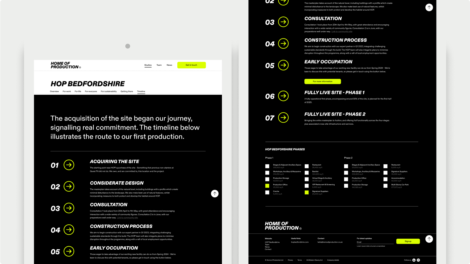 From this insight, I developed a service blueprint built on human values and needs. This formed the foundations of a placemaking strategy, b2c content framework and a comprehensive website which I designed to onboard global tenants to site. The website highlighted the values of work, life, sustainability and inclusivity and showed how these values were threaded throughout the masterplan, facilities and services. The pages could be viewed at a glance or in detail and are designed to grow with the business.